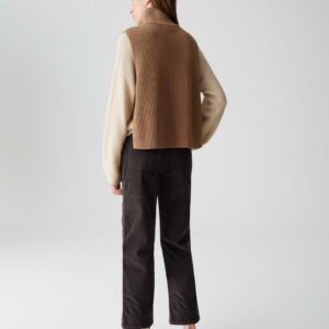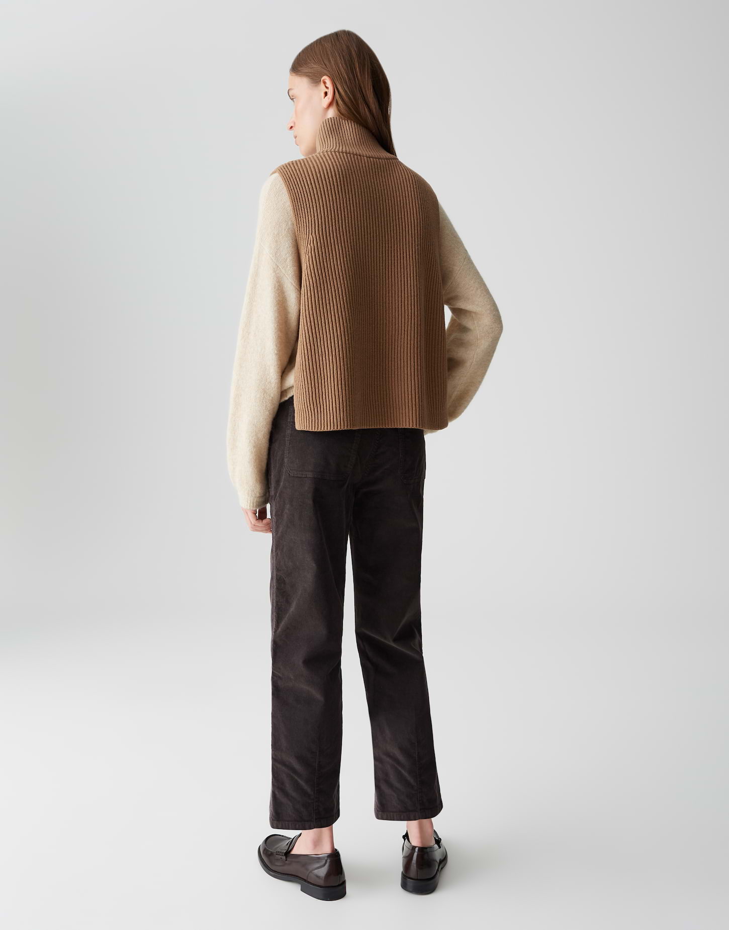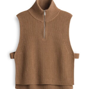 one size, gerader Schnitt, verkürzte Länge, hinten länger als vorne, Troyer-Kragen, Rückenlänge ca. 55 cm bei Größe 36, Model Größe 179 cm – trägt Größe 36, Grobstrick, Rippstruktur, weicher Griff, Reißverschluss, Riegel an den Seiten