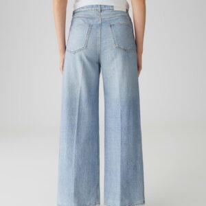 weiter, gerader Beinverlauf, Hosenbein Innenlänge in jeder Größe: L28 ca. 68 cm, Außenbeinlänge ca. 102 cm in jeder Größe, Model Größe 178 cm – trägt Größe 36 L28, Sweatware, weicher Griff, elastischer Stoff, Denim Print, 5-Pocket-Design, aufgesetzte Taschen hinten, verdeckter Zip-Fly, leichte Used-Effekte, Bügelfalten