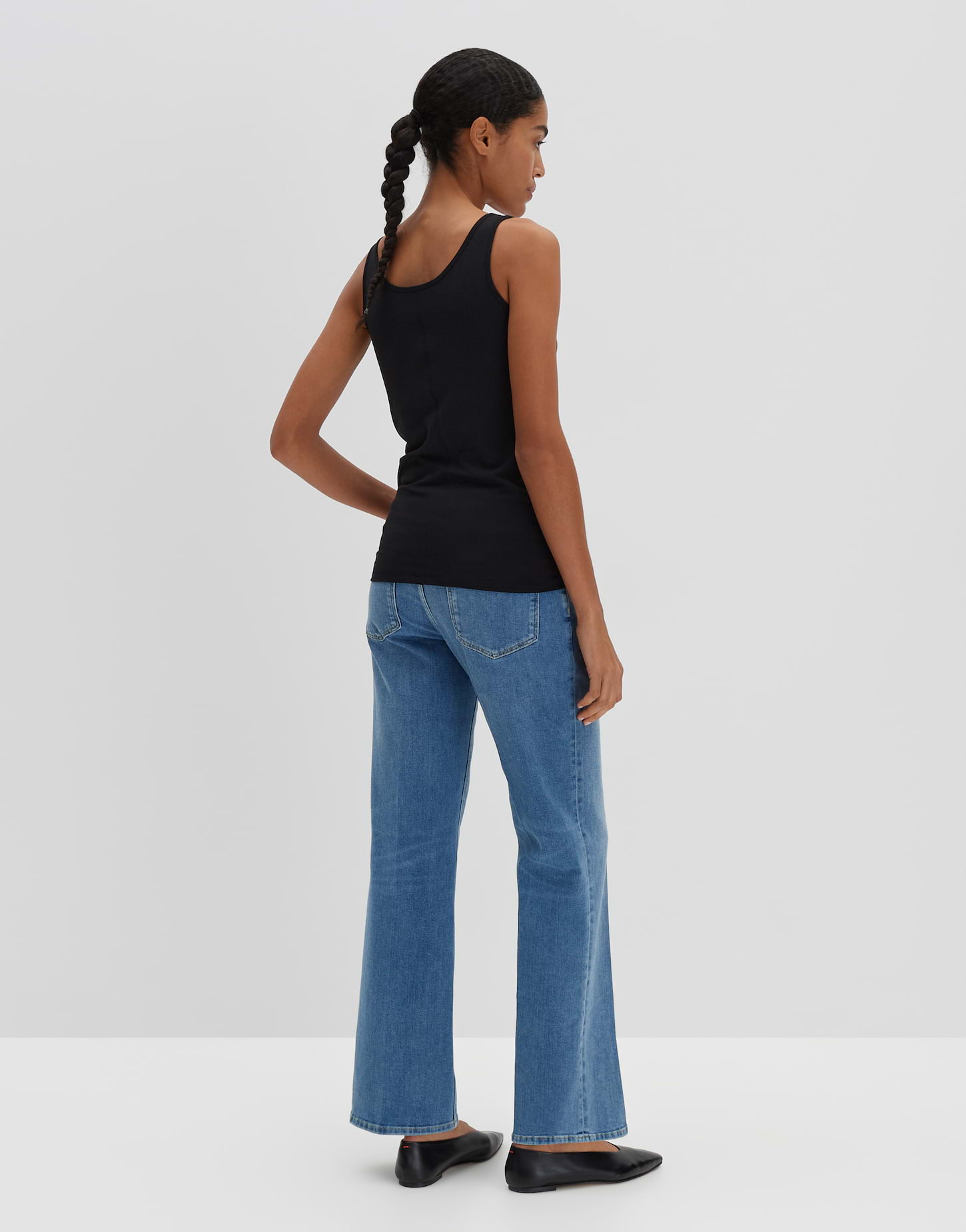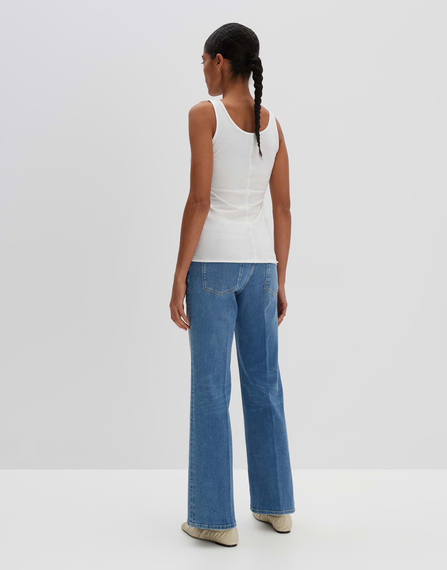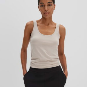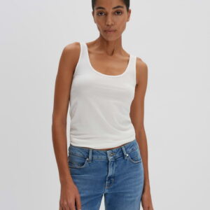 schmale Passform, figurbetont geschnitten, normale Länge, ärmellos, Rundhalsausschnitt, Rückenlänge ca. 62 cm bei Größe 36, BCI Cotton Mix, Jersey, weicher Griff, elastischer Stoff, Längsnaht hinten