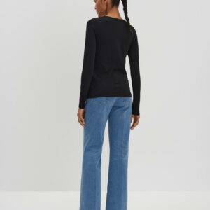 schmale Passform, figurbetont geschnitten, normale Länge, Langarm, Rundhalsausschnitt, Rückenlänge ca. 62,5 cm bei Größe 36, Modal Mix, Jersey, weicher Griff, Längsnaht hinten