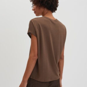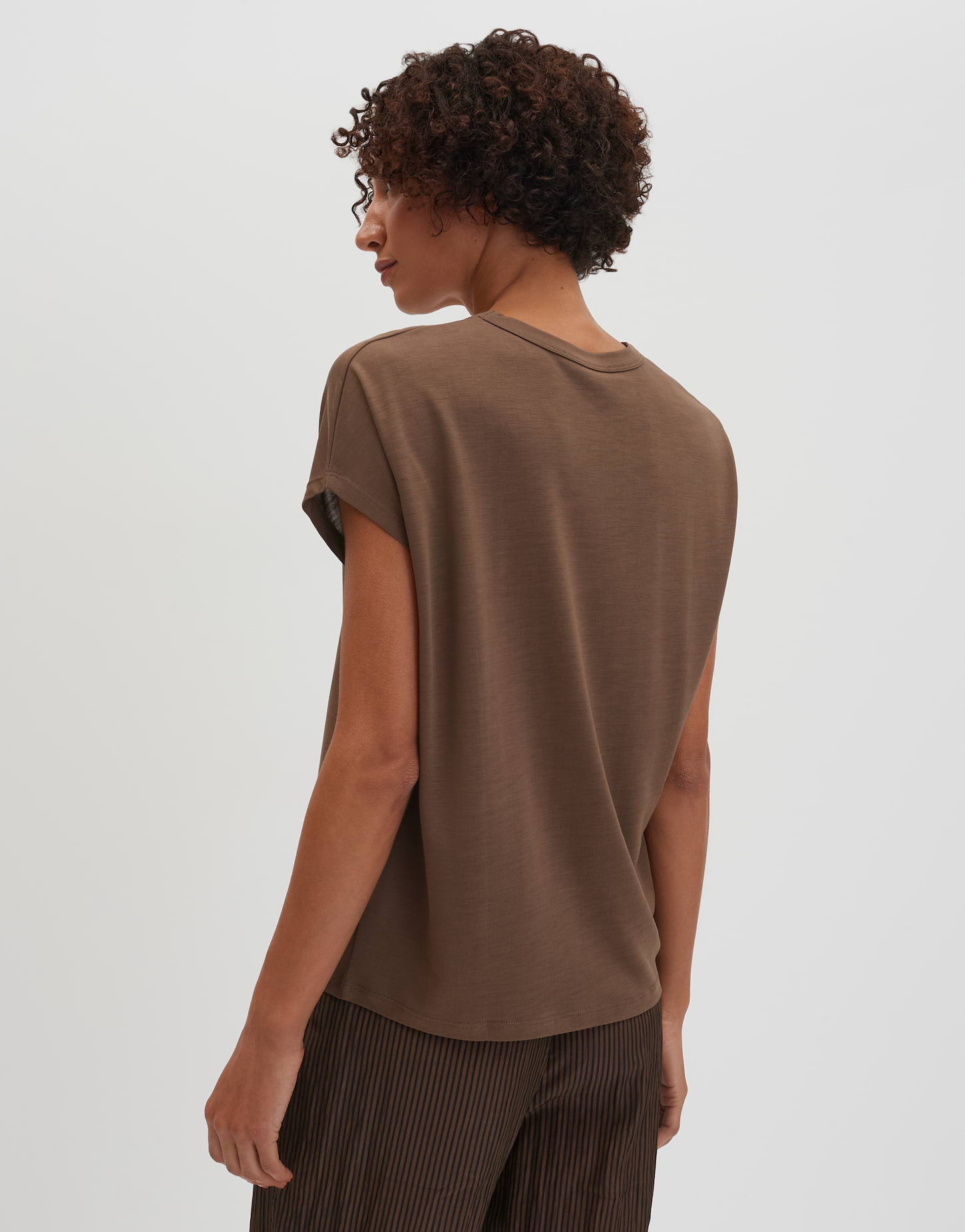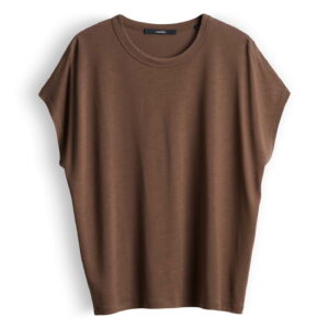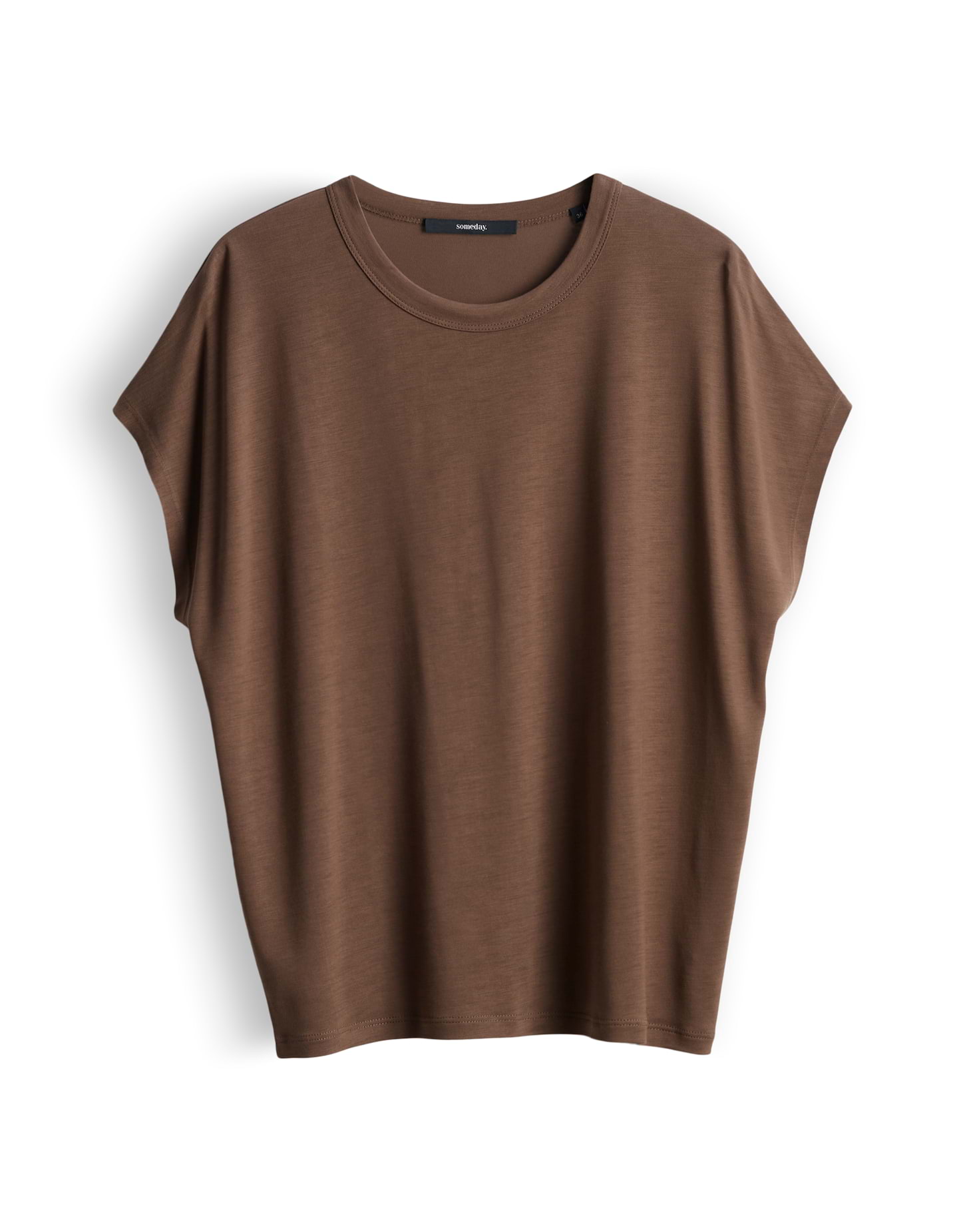 weite Passform, gerader Schnitt, normale Länge, überschnittener Kurzarm, Rundhalsausschnitt, Rückenlänge ca. 60 cm in Größe 36, Model Größe 177 cm – trägt Größe 36, TENCEL™ by Lenzing, Jersey, weicher Griff, dezenter Schimmer