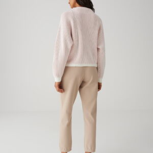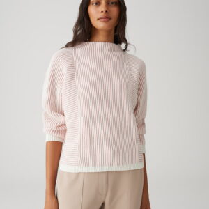 lockere Passform, schmal zulaufender Schnittt, leicht verkürzter Schnitt, langer Fledermausärmel, Rückenlänge ca. 53 cm bei Größe 36, Model Größe 177 cm – trägt Größe 36, Strick, Rippstruktur, weicher Griff, wärmend, zweifarbiges Muster, farblich abgesetzte Strickbündchen