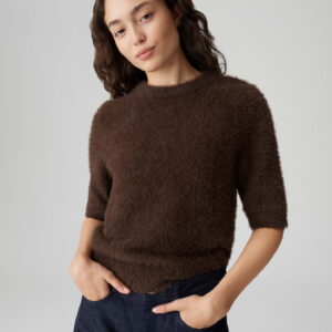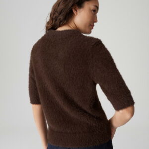 schmale Passform, schmal zulaufend, verkürzte Länge, 3/4 Arm, Rundhalsausschnitt, Rückenlänge ca. 54 cm bei Größe 36, Model Größe 177 cm – trägt Größe 36, flauschige Oberfläche, Strick, weicher Griff, Strickbündchen